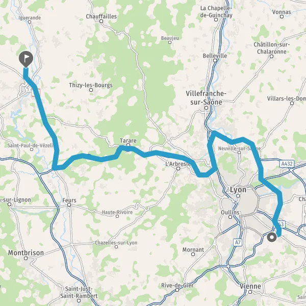 Prendre à droite et rejoindre A89. Continuer sur 54 kilomètres