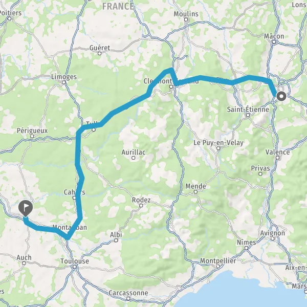 Prendre à droite et rejoindre A62 E72. Continuer sur 67 kilomètres