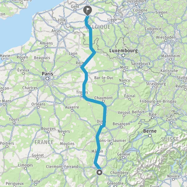 Continuer A46 A42 E15 E611 sur 153 kilomètres