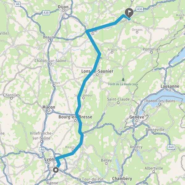 Prendre à droite et rejoindre A36 E60. Continuer sur 51 kilomètres