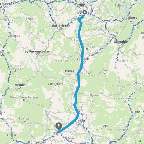 Prendre à droite et rejoindre A9 E15. Continuer sur 54 kilomètres