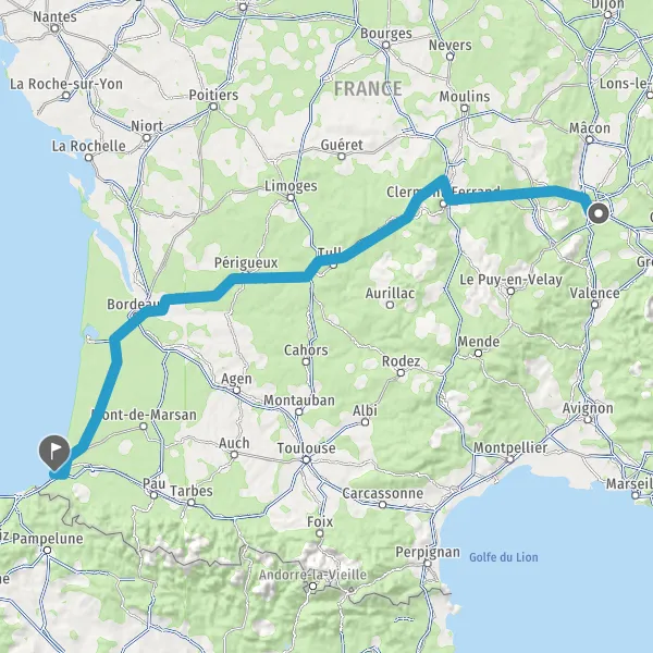 Prendre à droite et rejoindre A63. Continuer sur 183 kilomètres