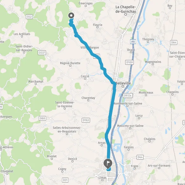 Tourner à droite sur D86 (Route de Villié-Morgon) et continuer sur 2 kilomètres