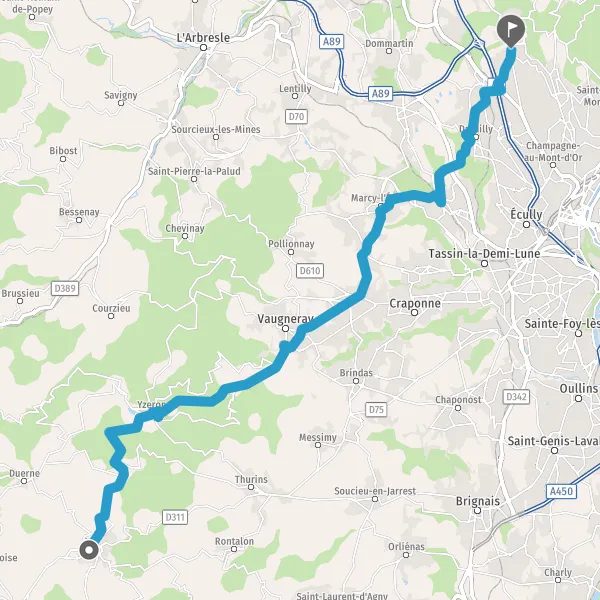 Tourner légèrement à droite sur D489 (Route d'Yzeron) et continuer sur 950 mètres