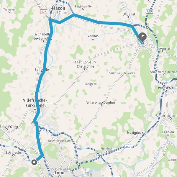 N79A406Bourg-en-BresseMâcon-CentreVillefrancheLyonVarennes-lès-MâconCrêches-sur-SaôneThoissey