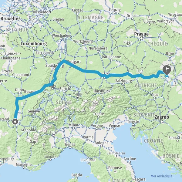 Prendre à droite et rejoindre A36. Continuer sur 236 kilomètres