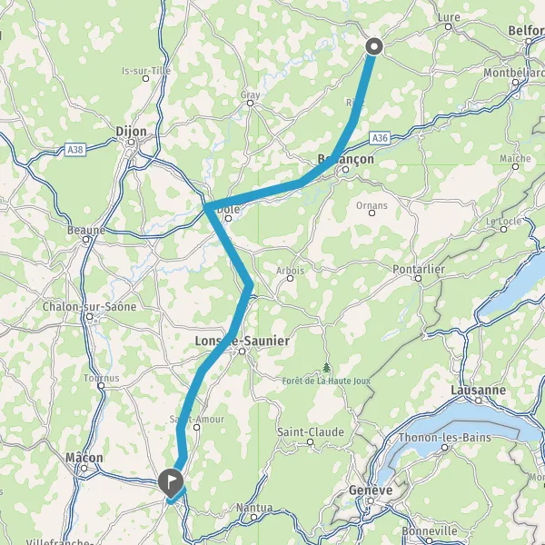 Prendre à droite et rejoindre A36. Continuer sur 51 kilomètres