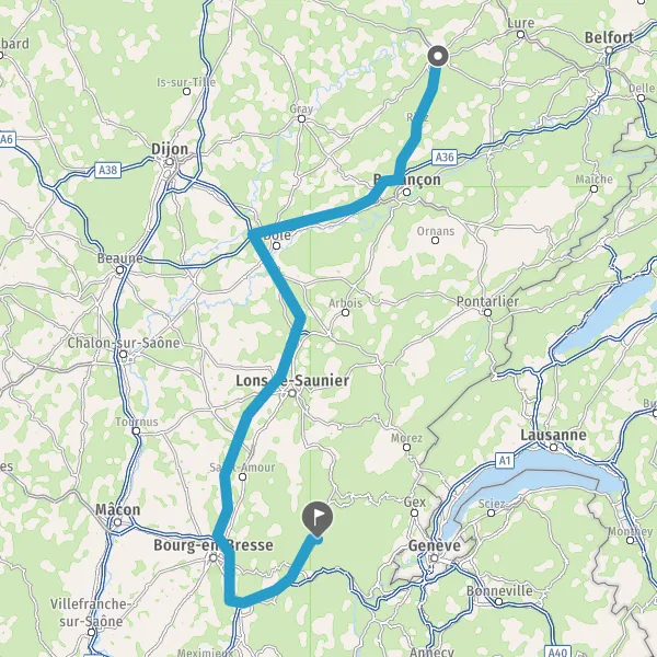 Prendre à droite et rejoindre A36. Continuer sur 51 kilomètres