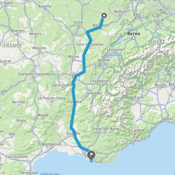 Au rond-point, prendre la 2ème sortie sur N57 E23 (Les Laverottes) et continuer sur 30 kilomètres