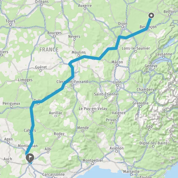 Prendre à droite et rejoindre A36. Continuer sur 93 kilomètres