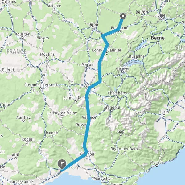 Au rond-point, prendre la 2ème sortie sur N57 E23 (Les Laverottes) et continuer sur 30 kilomètres