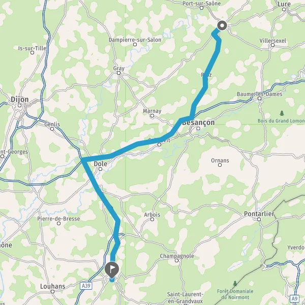 Prendre à gauche et rejoindre A39. Continuer sur 36 kilomètres