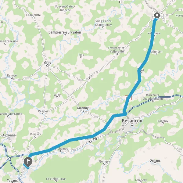 Au rond-point, prendre la 2ème sortie sur N57 E23 (Les Laverottes) et continuer sur 30 kilomètres