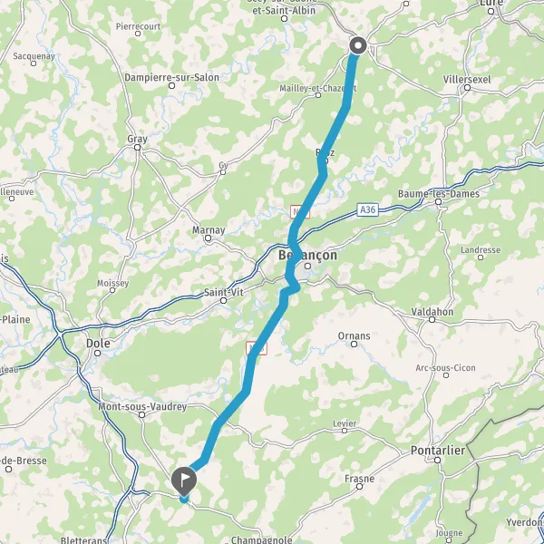 Sortir et rejoindre N57 (Rue de Vesoul). Continuer sur 350 mètres