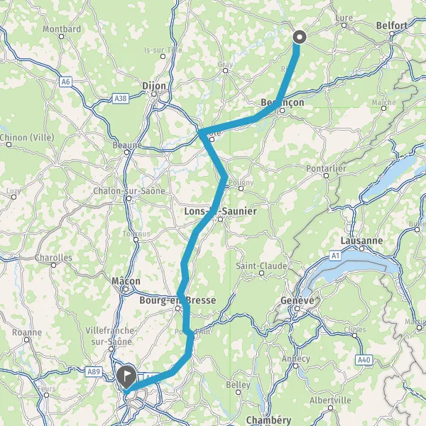 Prendre à droite et rejoindre A36. Continuer sur 51 kilomètres