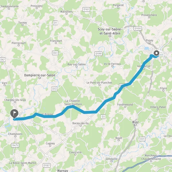 Tourner à gauche sur D23 (Route de Gy) et continuer sur 230 mètres