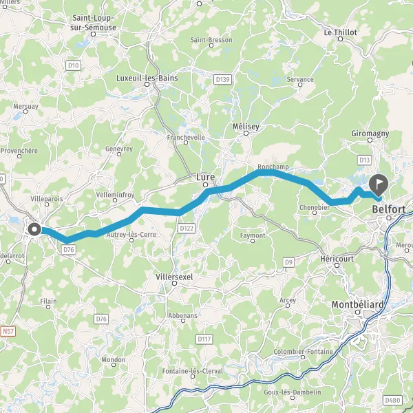 Tourner légèrement à droite sur Route de Vy-lès-Lure et continuer sur 4,7 kilomètres