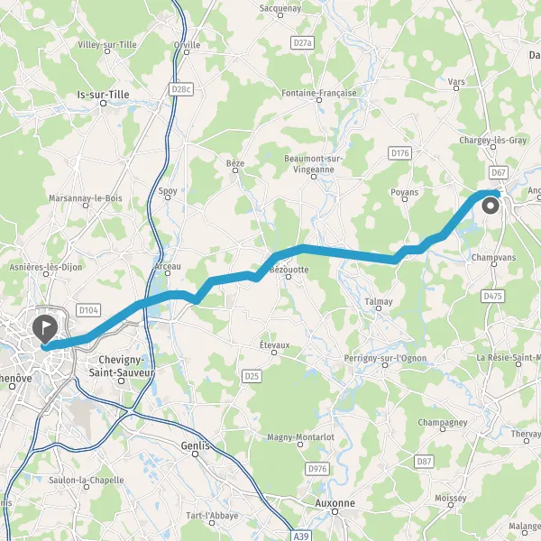 Au rond-point, prendre la 2ème sortie sur D960 (Route de Fontaine-Française) et continuer sur 350 mètres