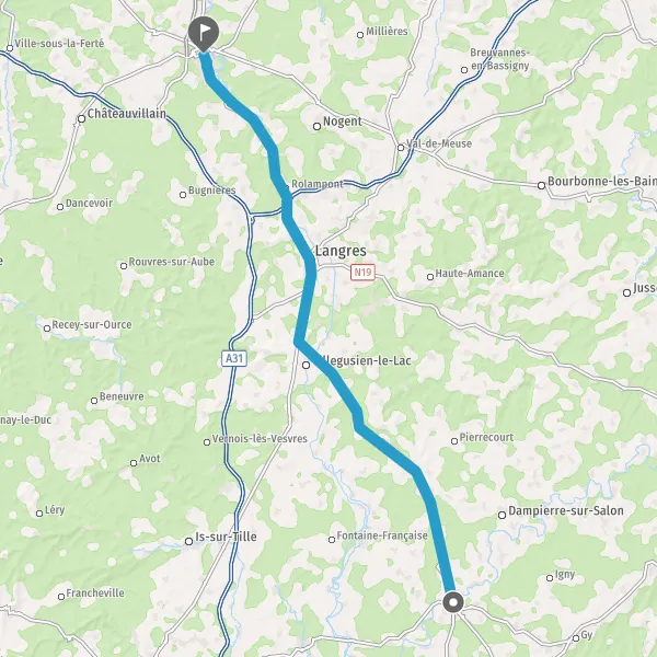 Tourner légèrement à droite sur N19 E54 (Route de Chaumont) et continuer sur 8,1 kilomètres