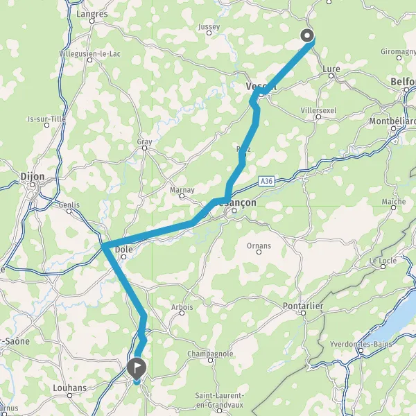 Prendre à droite et rejoindre A36. Continuer sur 51 kilomètres