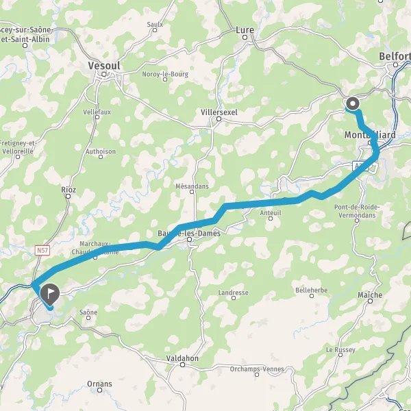 Au rond-point, prendre la 3ème sortie sur N57 (Rue de Vesoul) et continuer sur 2,2 kilomètres