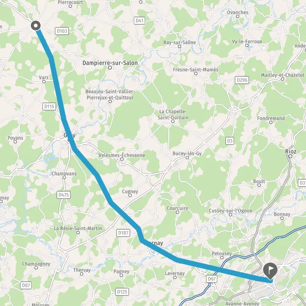 Au rond-point, prendre la 3ème sortie sur D70 (Route de Gray) et continuer sur 2,1 kilomètres