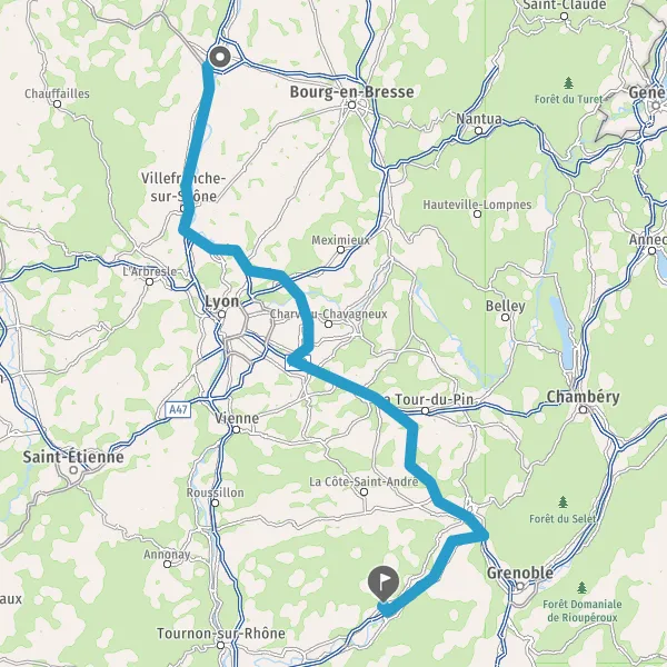 Prendre à droite et rejoindre A48. Continuer sur 42 kilomètres