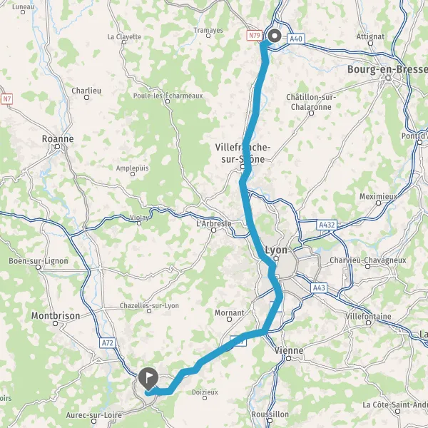 Prendre à droite et rejoindre A72. Continuer sur 1 kilomètre