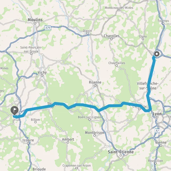 Continuer et rejoindre A89 E70. Continuer sur 77 kilomètres