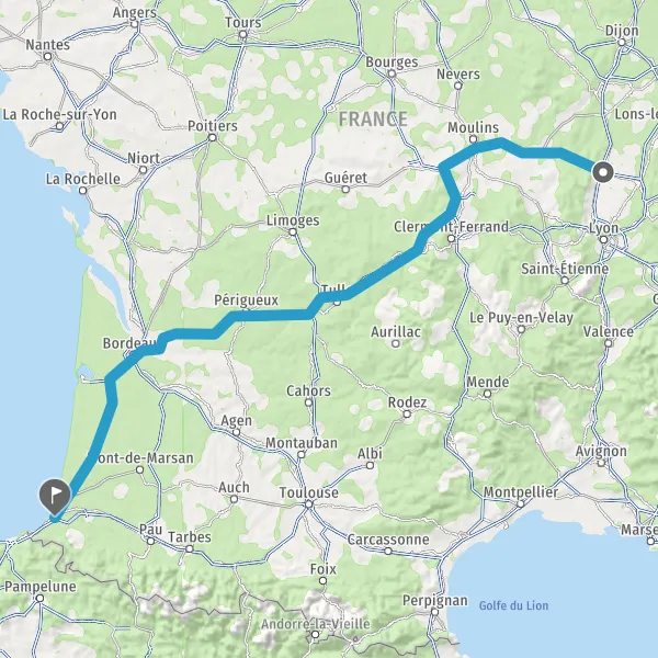 Prendre à droite et rejoindre A63. Continuer sur 172 kilomètres