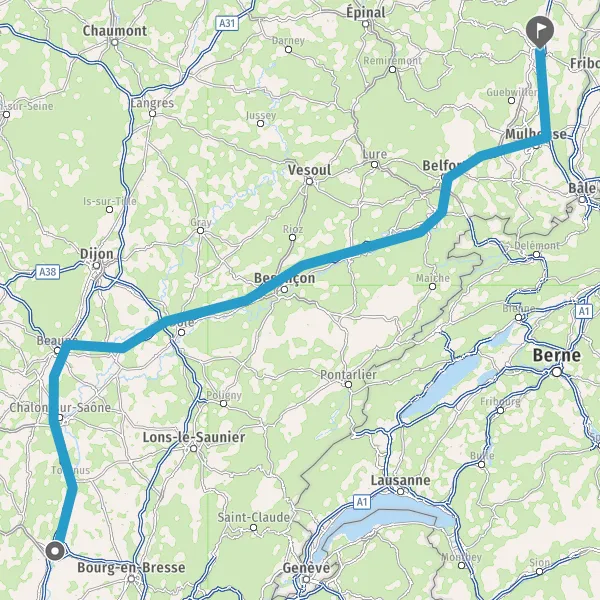 Prendre à droite et rejoindre A36. Continuer sur 225 kilomètres