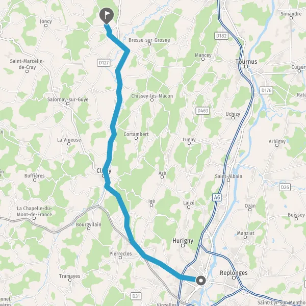 Tourner légèrement à droite sur D67 (Route de Cluny) et continuer sur 1,1 kilomètre
