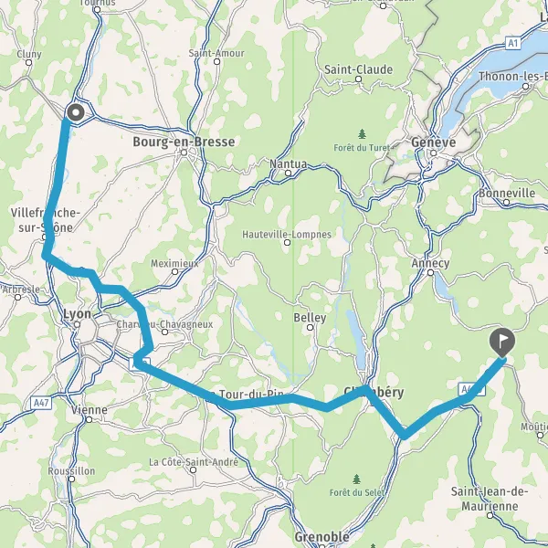 Prendre à droite et rejoindre A43. Continuer sur 19 kilomètres