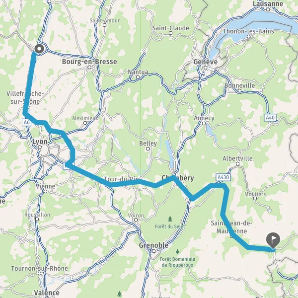Prendre à droite et rejoindre A43 E70. Continuer sur 65 kilomètres