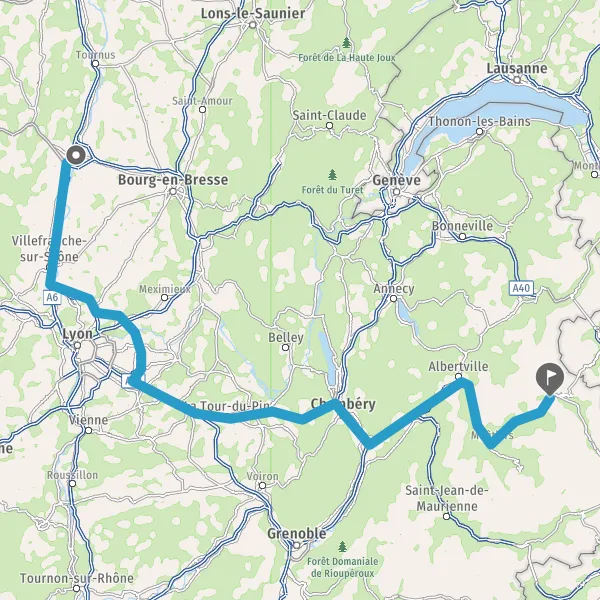Prendre à droite et rejoindre A43. Continuer sur 19 kilomètres