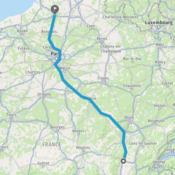 Prendre à droite et rejoindre A6 E15 E21. Continuer sur 76 kilomètres