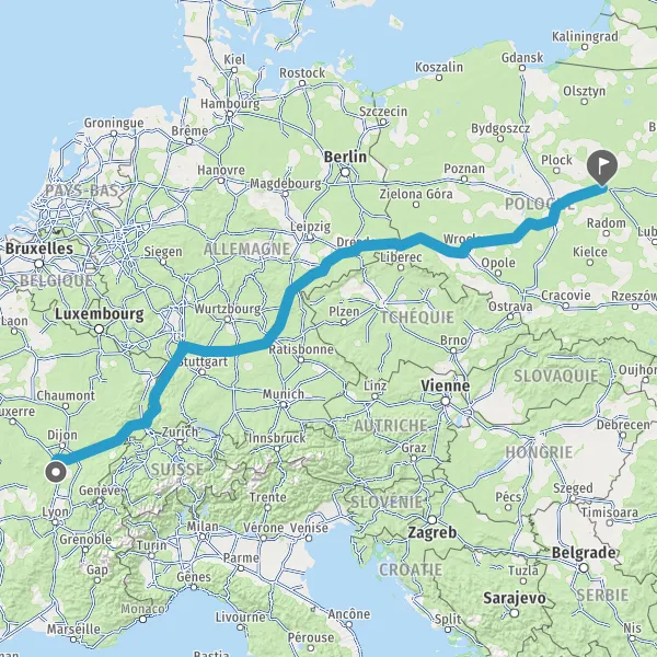 Prendre à droite et rejoindre A36. Continuer sur 236 kilomètres