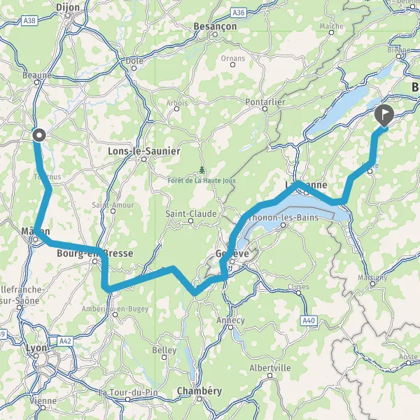 Tourner légèrement à gauche sur D47 (Rue du Jura) et continuer sur 8,6 kilomètres