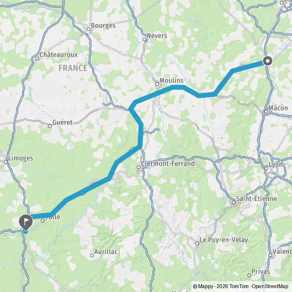 Prendre à droite et rejoindre A89 E70. Continuer sur 160 kilomètres