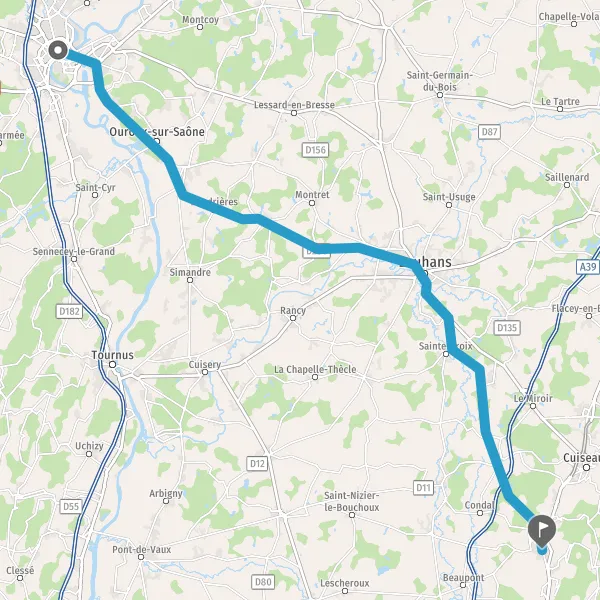Au rond-point, prendre la 2ème sortie sur D160 (Route de Louhans) et continuer sur 6,9 kilomètres