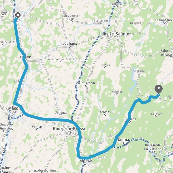 Prendre à droite et rejoindre A40. Continuer sur 60 kilomètres