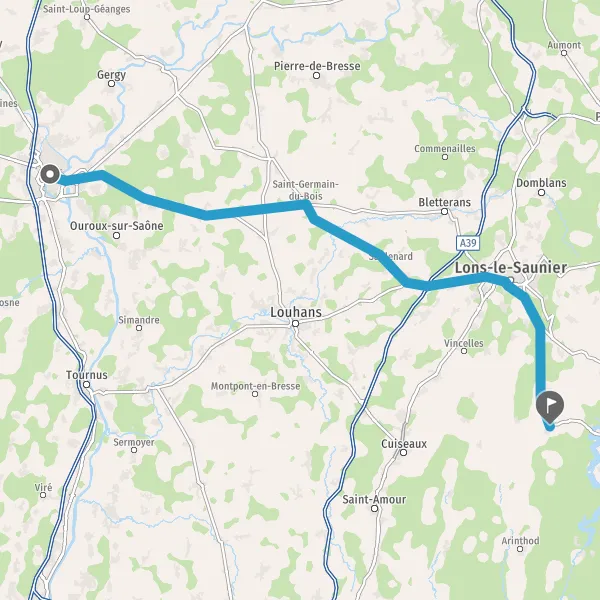 Tourner à droite sur D13 (Route de Louhans) et continuer sur 1,9 kilomètre