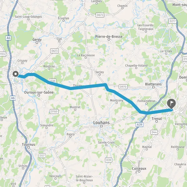 Tourner à droite sur D13 (Route de Louhans) et continuer sur 1,9 kilomètre