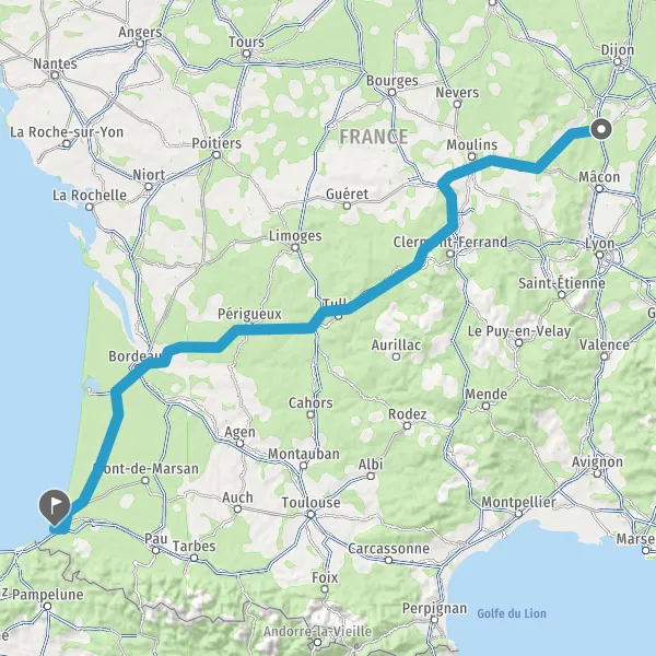 Prendre à droite et rejoindre A63. Continuer sur 183 kilomètres