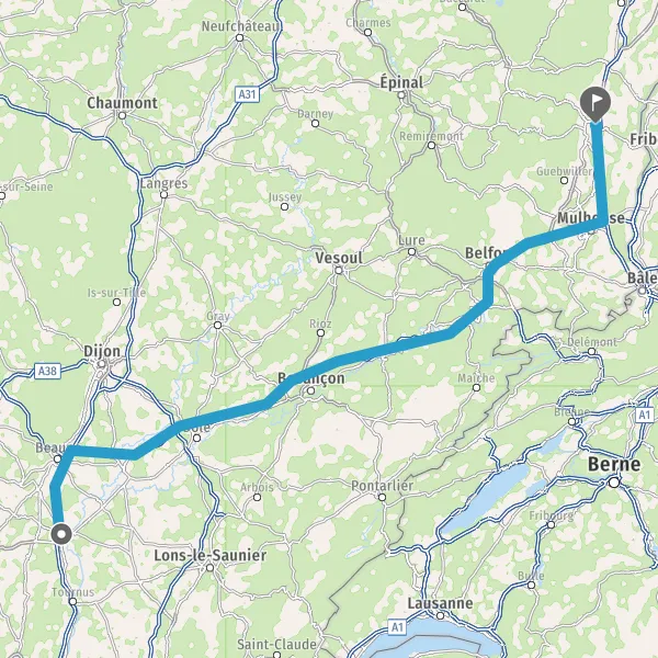 Prendre à droite et rejoindre A36. Continuer sur 165 kilomètres