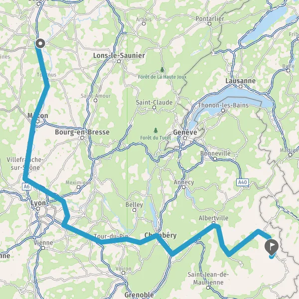 Prendre à droite et rejoindre A43. Continuer sur 19 kilomètres