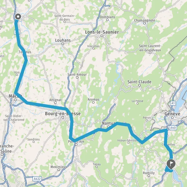 Prendre à droite et rejoindre A40. Continuer sur 60 kilomètres