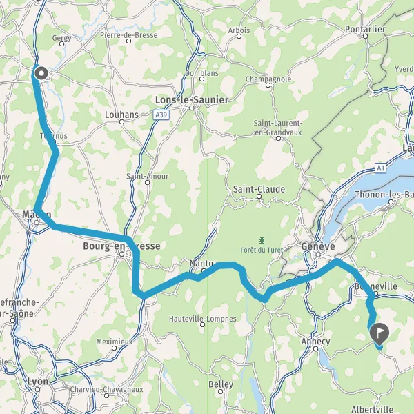 Prendre à droite et rejoindre A41. Continuer sur 24 kilomètres
