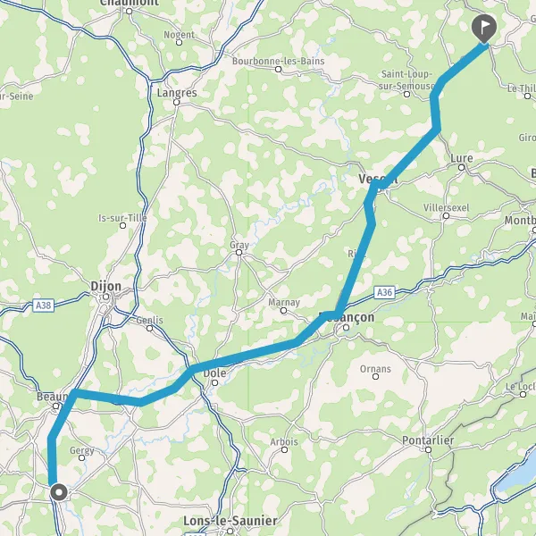 Prendre à droite et rejoindre A36. Continuer sur 92 kilomètres