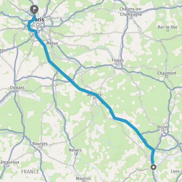 Prendre à droite et rejoindre A6. Continuer sur 294 kilomètres